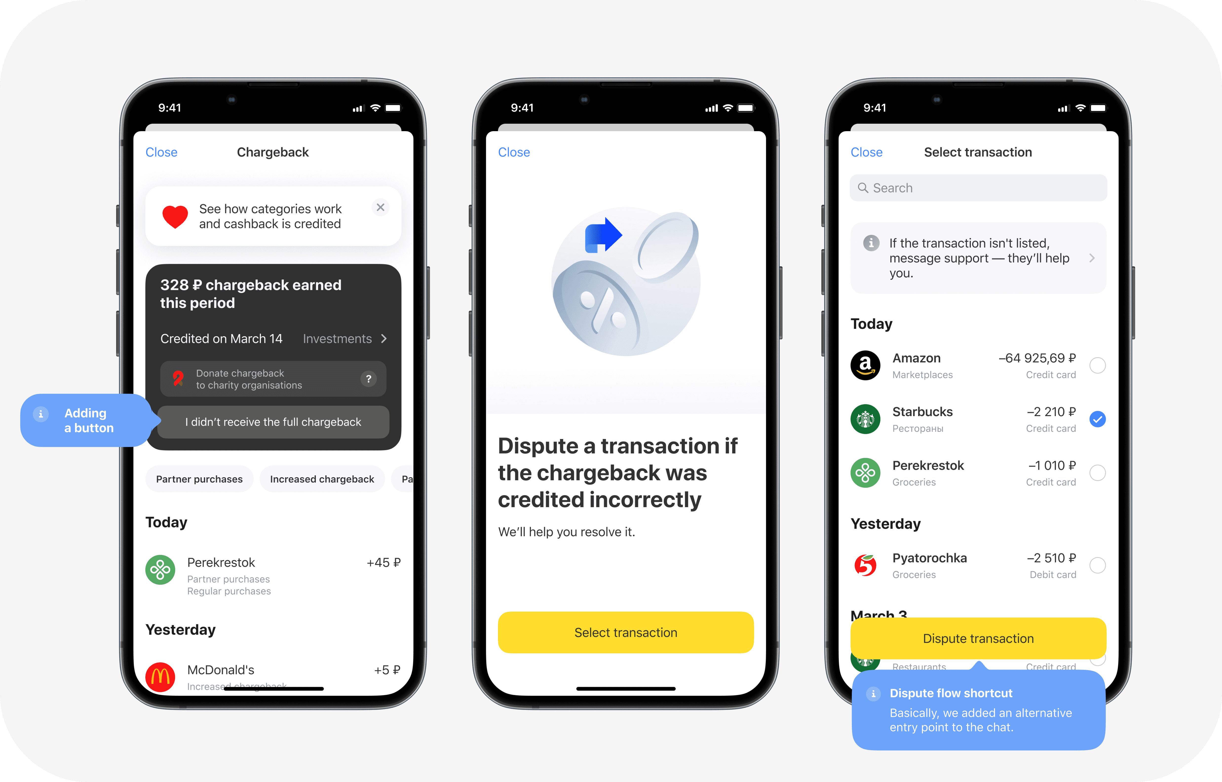 I redesigned and optimized the chargeback dispute process at Tinkoff Bank, shifting it from a manual support-heavy system to an automated self-service flow. This transformation significantly reduced operational costs and improved user autonomy.